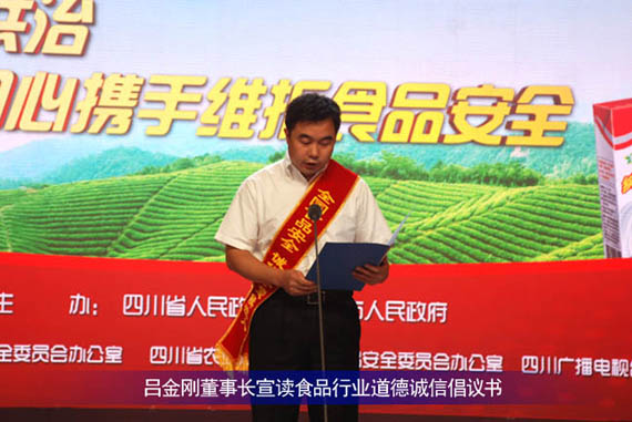 全國“食品安全 誠信守望”候選(xuǎn)人——四川(chuān)国产亚洲熟妇在线视频食品股(gǔ)份有限公司董事長呂金剛上台宣讀了《食(shí)品行業道德誠信倡議書》,向全(quán)省食品生產經營業廣大同(tóng)仁倡議(yì):