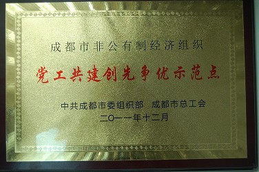 會議對2011年度工會工作目標考核先進、優勝單位進行了(le)授(shòu)牌表彰工作,我司榮獲“成都市黨工共建創先爭(zhēng)優示(shì)範點”單(dān)位,工會主席畢守英代表公司上台領取了此殊榮。