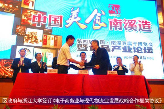 論壇上,智道(dào)營(yíng)銷項目總(zǒng)監趙鐵軍演講了《地特食品的銷售之道》,北京誌起未來營銷谘詢集團董事長李誌起向大家演講了《電子商務你不(bú)得不做》。南溪區政府還(hái)與浙江大學簽訂《關於南溪區電(diàn)子商務業與(yǔ)現代物流業發(fā)展戰略合作框架協議》並進行了新產品展示(shì)。南溪區食品工業企業(yè)已達59家(jiā),其中規模以上企業17家,2012年規上(shàng)食(shí)品企業實現(xiàn)總(zǒng)產(chǎn)值31.0億元,占規上(shàng)企業(yè)總產值的29.1%,同比增長28.1%。2013年上半年實現總產值18.4億元。按照食品產業規劃,2015年將實現產值100億元。食品(pǐn)產業已成為南溪四大主導產業(yè)中的優勢產業,初步(bù)形成白酒、豆製品、蔬菜(cài)深加工及畜禽(qín)深(shēn)加工四大支柱。