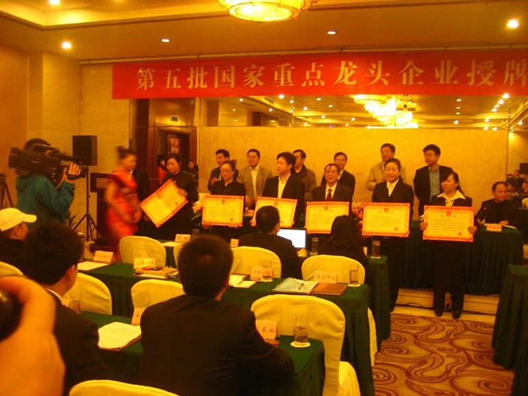 會(huì)議對(duì)經(jīng)過農業部、國家發改委、財政部及商務部等八(bā)部委聯合評(píng)定的“第五批農業產業化國家重(chóng)點龍(lóng)頭(tóu)企業”進行了授牌表彰工作。我(wǒ)司公關法務中心總監畢守英代表公司領取了此(cǐ)殊榮。