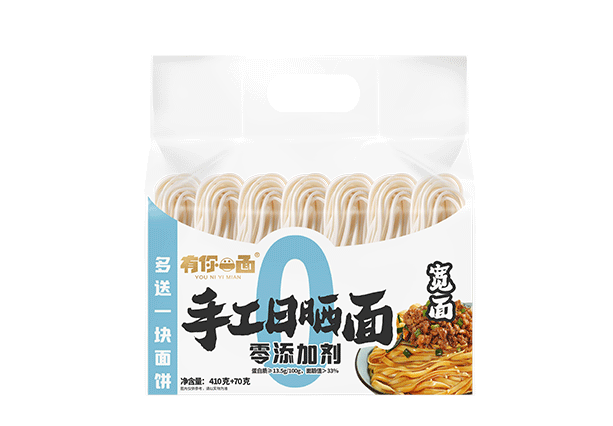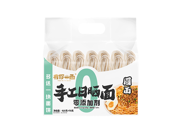 工藝特點:傳(chuán)統製麵工藝,麵餅0添加, 7道壓(yā)延工藝,自然醒發,陽光日曬8小時(shí),口(kǒu)感(gǎn)爽滑、勁道十足
