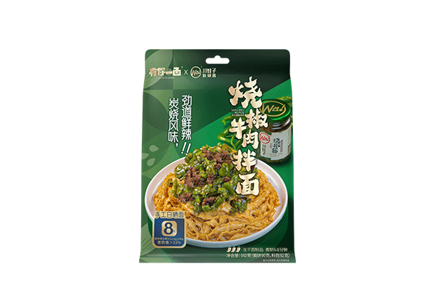 燒椒牛肉(ròu)拌(bàn)麵口味特點:有你(nǐ)一麵X川娃子燒椒醬聯名新品,打造鮮辣CP;炭燒風味,鮮辣自然,椒香濃鬱,美味可口!