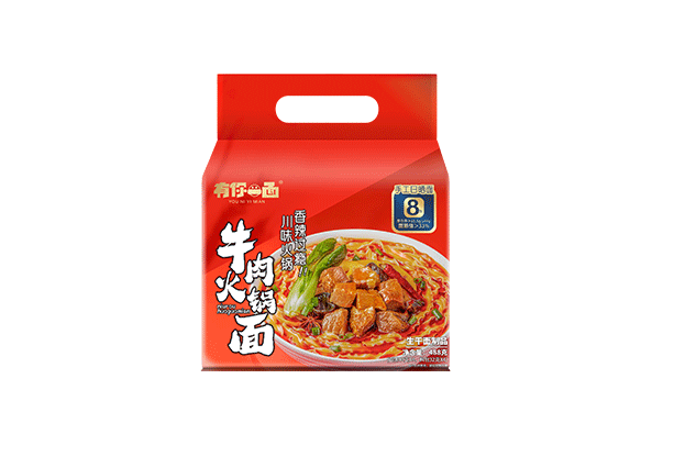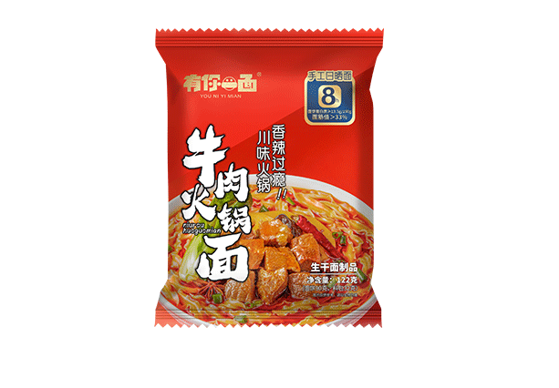 牛(niú)肉火鍋麵口味特(tè)點:川式火鍋味與勁道麵條激情碰撞(zhuàng),香辣過癮(yǐn),正宗火鍋底料,麵條也可以吃成大餐,色香味俱全